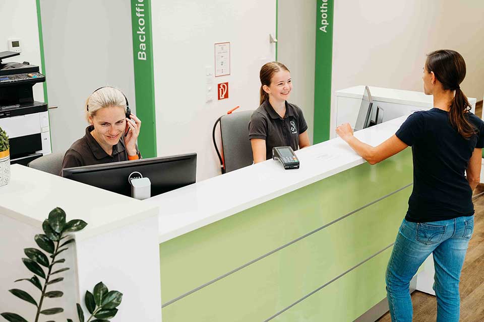 Innerhalb unserer Öffnungszeiten stehen wir Ihnen jeder Zeit persönlich zur Verfügung. Unsere Anmeldung ist wochentags von 08.00-18.00 Uhr und samstags von 09.00 bis 12.00 Uhr durchgehend besetzt.